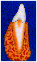 Konkremente in tiefen Taschen: In tiefen Zahnfleischtaschen bilden sich feste Ablagerungen, die professionell entfernt werden müssen.