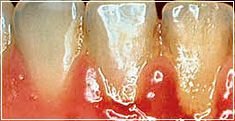 Harte Zahnbeläge unter dem Zahnfleisch: Zahnstein und harte Beläge können sich bis unter das Zahnfleisch ausbreiten.