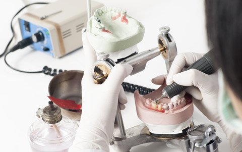 Individuell angepasste Prothesen, inkl. Klammerprothesen, Kombinationsersatz, Geschiebeprothesen und Totalprothesen.